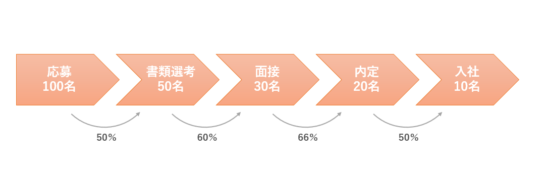 – 歩留まりは「応募→書類→面接→内定→承諾」の各通過率