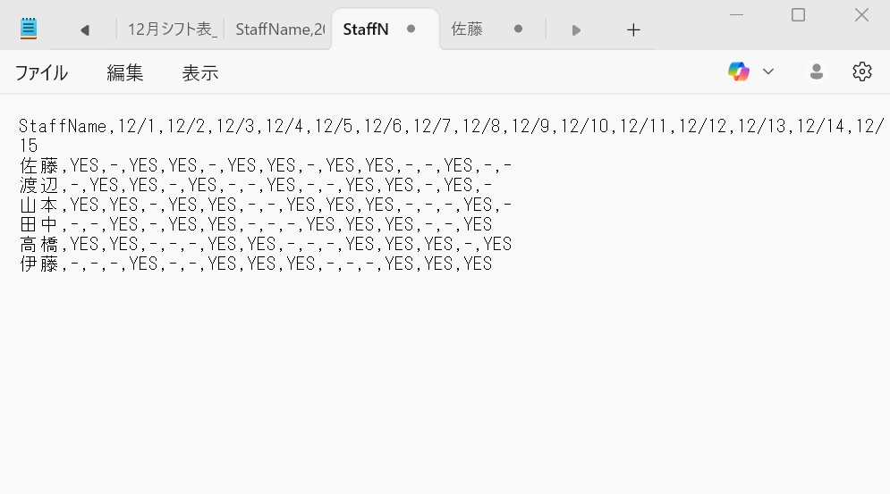 Claudeが作成したシフトは、そのままCSV形式でダウンロードできます。