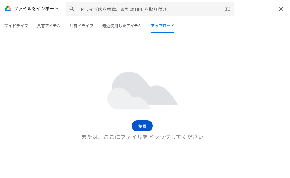 アップロードのタブに切り替え、先ほど保存したCSVデータを選択してください。