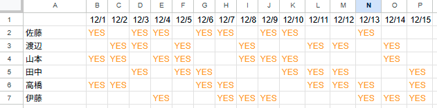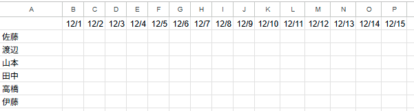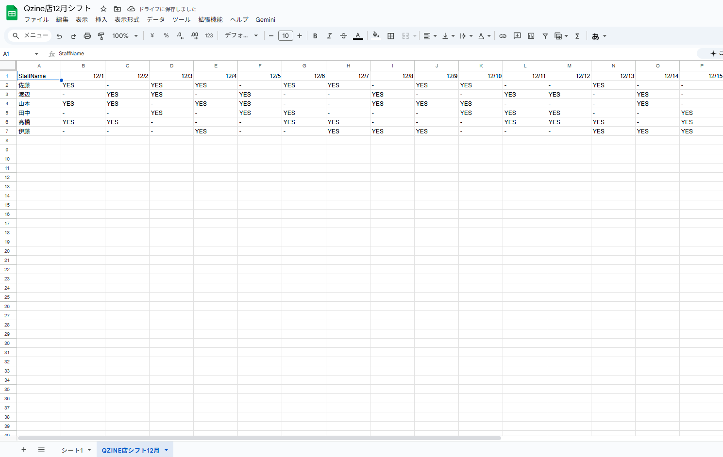 上記の画像内「12月シフト表(希望考慮版)」と書かれた部分をクリックすると、以下のようなものが表示されます。