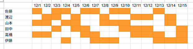 視覚的に見やすいシフト表が完成しました!あとは格子や中央揃えなどで調整したら…